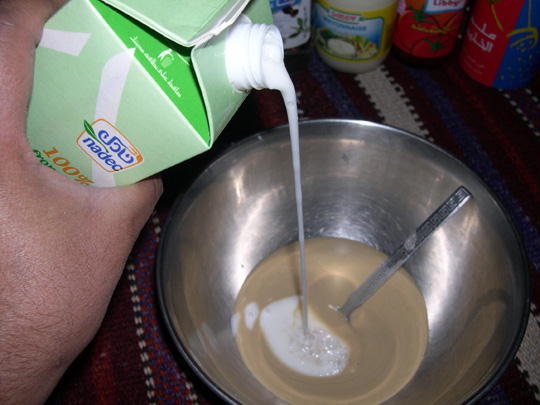 ثم صب عليه اللبن هاللون .