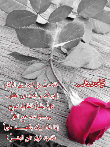 إذا شاء ربك بالعبــــــد خيراً فقدرته فوق ظن البشـــرْ ! حقا وصدقا سلمت يداك وسلم القلم المبدع حبيبتي الذي يتقن أشعاره ويبدع نثره ودمت بود وحب دائمين غاليتي فيض واحة الأدب الرقراق وعطرها