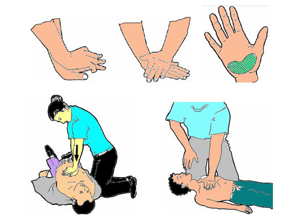 - يدلك قلب البالغ ب4 حتى 5 سم نحو الاسفل ، أما الطفل والرضيع بثلث عرض الصدر. اما التسارع فيبقى ثابتا بالنسبة لجميع الفئات العمرية ب 100 كبسة في كل دقيقة.