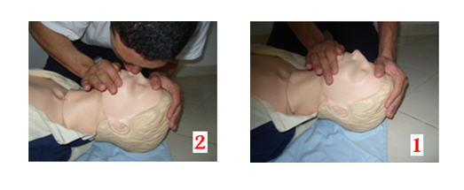 - إرفع رأس الضحية الى الخلف لتحرير المسالك الهوائية
