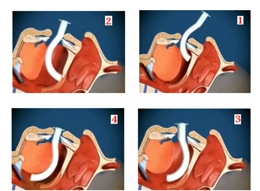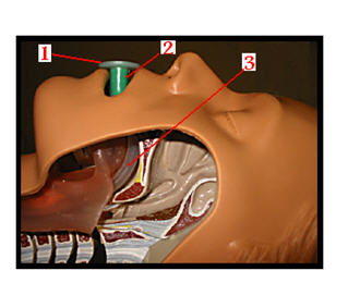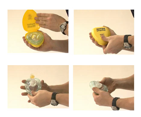 - أخرج القناع من العلبة ،ثم إسحب الأنبوبة لأعلى للحصول على الشكل الملائم، بعدها أصل الأنبوبة بالصمام ،لتتموضع أنت، بعد ذلك بجانب الضحية.