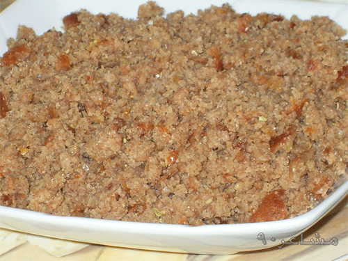 بعد ما تنضج تطحنينها بالخلاط مع نص كيلو تمر منوع النوى ... مع أصبع زبده وتقلبينه وانا عن نفسي وضعت هيل ناعم ملعقة...