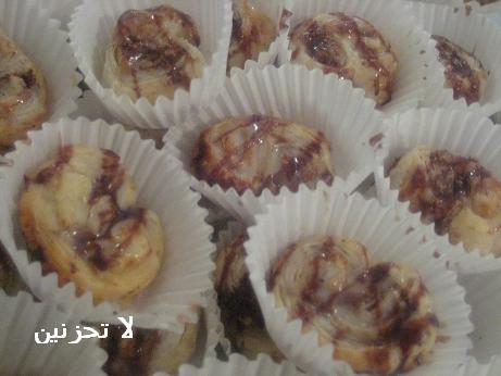 ثم رشيه بالقرفة والحليب المحلى المركز وصوص الشوكولا هيرشي