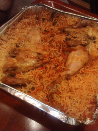 انا قلبت الدجاج مع البصل وخليته بعظمه واضفت البهارات وخليتها شوي لين تقلت بعدين اضفت المويه