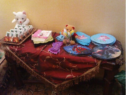 والاطفال المعازيم كانو كلهم من ارقاربنا اولاد اخوي واختي وعيال سلفاتي وعيال خوات زوجي وكلهم في اول سنه دراسيه والباقي مايدرسون