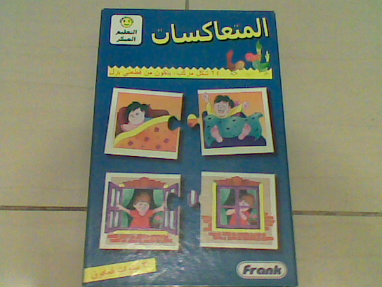 هي عبارة عن بازل قطعتين ... وفيه المتعاكسات والاشكال والالوان و اجزاء جسم الانسان والارقام والحروف ...