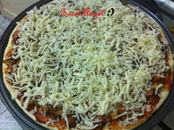 وبنتركها تخمر وبنبدأ بعمل الحشوة حقت البيتزآآ