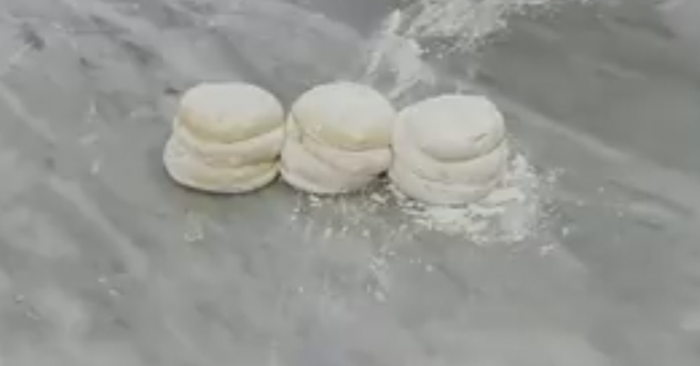 واكون مجهزة مكان على الرخام مليء بالنشا واضع الكرات مثل ما هي على النشا .. وراعي أن تبقى يدك جافة تماما من النشا ..وبعد أن ننتهي من تقطيع كامل العجين .. نشر فوقه نشا ..