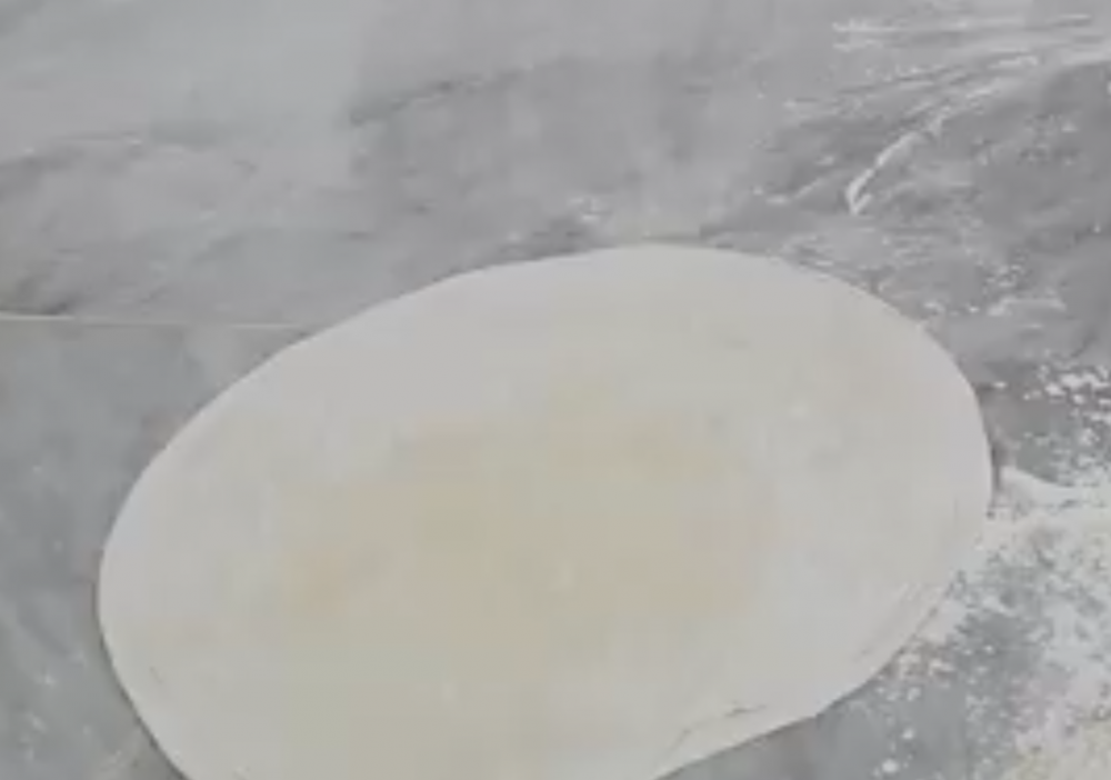 ونرجع نرق ونفرد العجين إلى أن نحصل على طبقات رقيقة عليها نشا ..