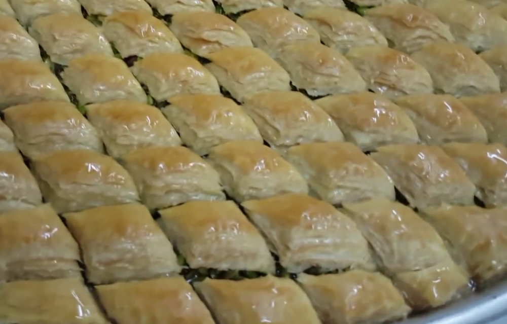 قومي برش رشة سكر فوق الطبقات التي رتبتيها في الصينية كي تساعد على تماسك المكسرات فوق العجينة .. رشة بسيطة
