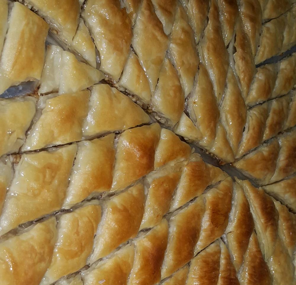 والذي تبقى من العجين أقوم بترتيبه في الصينية .. لا تضعي بينها سمنة أو زبدة أو أي شيء .. فقط رتبي الطبقات ..
