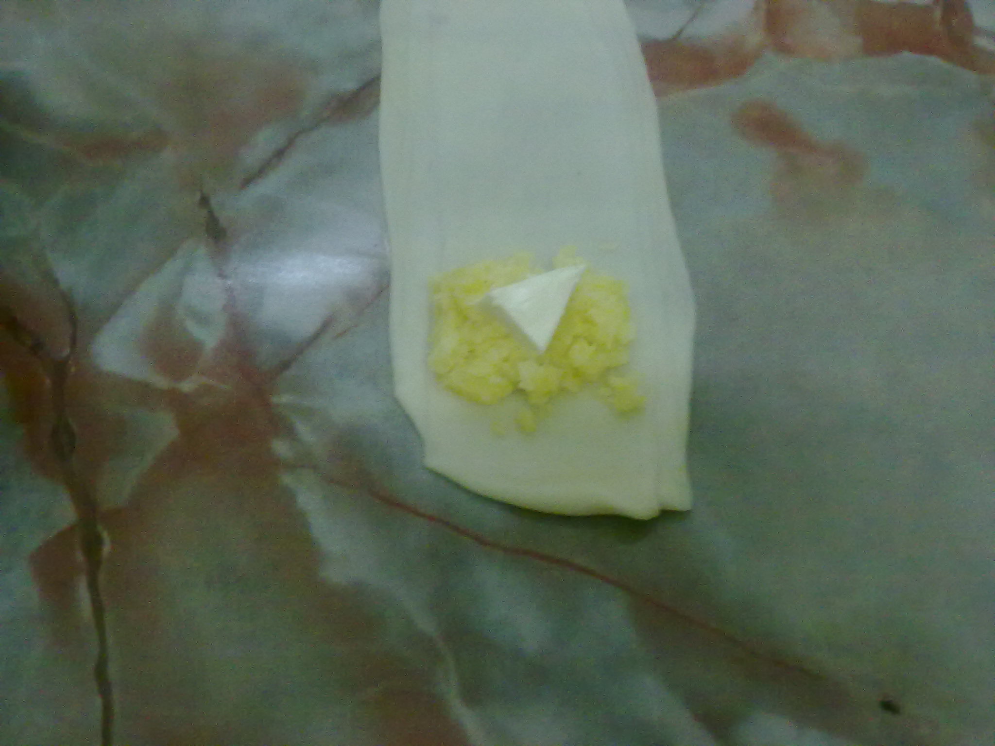 ونحط الحشوة وهذا كل علي حسب رغبته انا حشيته بطاطس مسلوق مع فلفل أسود وثوم وشوية ملح وجبن