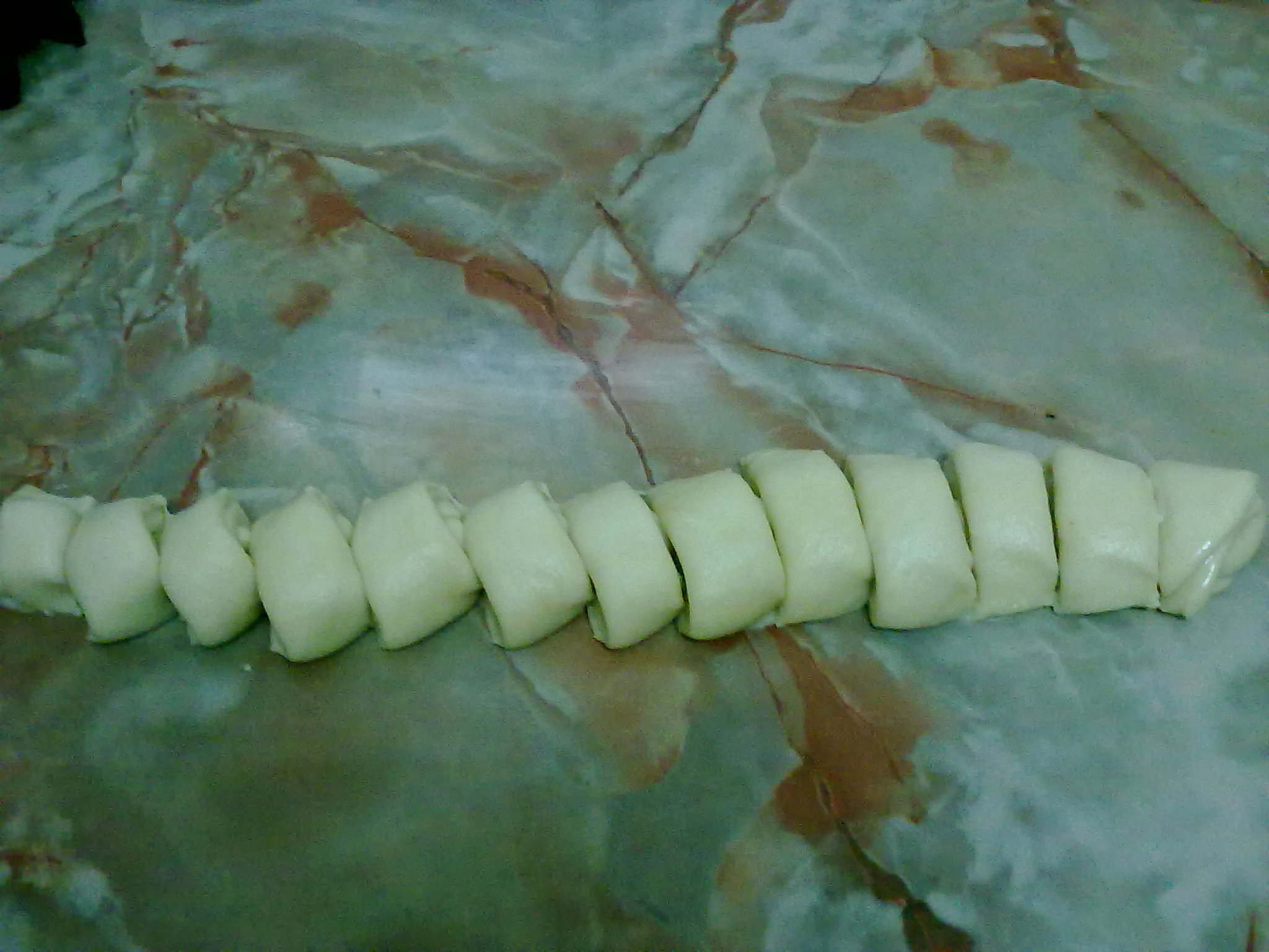 بعدين نلف العجينة بشكل اسطواني بهذه الطريقة