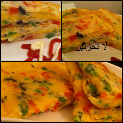 نخلط مقادير العجينة بالخلاط ونضيف لها الخضار المقطعة ونحركها بالملعقة