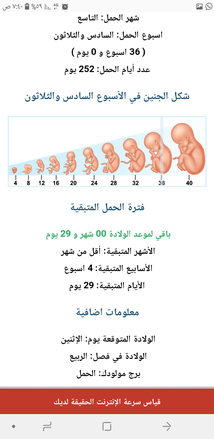 معلومات اضافيةالولادة المتوقعة يوم: الأحد