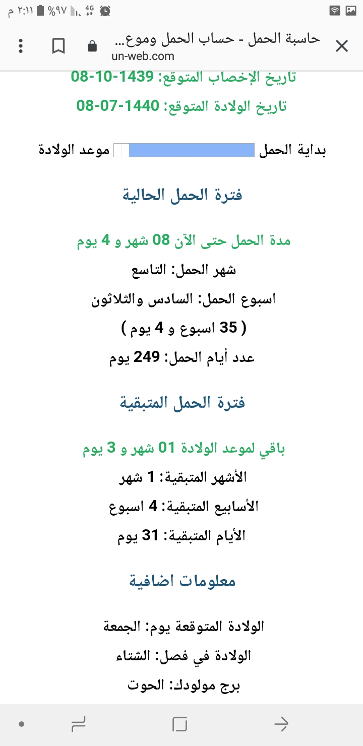 بنات انا في صدمه لدرجه نمت ابكي عالحمل لي الثاني وتعبت فيه حاليا رجولي منفوخه لدرجه الاصابع ماتنحط.عالارض من النفخه الرجل بطني يتحجر و حركة الجنين توجع وبالاسفل الراس نازل انكتم افقد التنفس ونفسيه استغفر الله غثيان على طول اذا طولت نايمه على جهه يتشنج فخذي ويالله انقلب تعب تعب الحمدلله على كل حال المشكله يابنات مبسوطه دخلت التاسع واكل تمر واناناس واسوي القرفصاء واروح لموعدي البارح تقولي لسا انتي بالثامن بنص الثامن كيف وانا دخلت التاسع قالت لا لسا قلت متى ادخل التاسع بالهجري قالت يوم ثلاثه قلت يعني خلاص دخلت التاسع عدينا تاريخ ٣ يوم الجمعه وحنا اليوم الاثنين قالت لا التقويم قديم ورجعت تشوف تقولي يوم ١٤ تدخلي التاسع موعد اخر دوره ٢٤ رمضان معقوله مادخلت التاسع ياربي بنجلطبنات انا في صدمه لدرجه نمت ابكي عالحمل لي الثاني وتعبت فيه حاليا رجولي منفوخه لدرجه الاصابع...