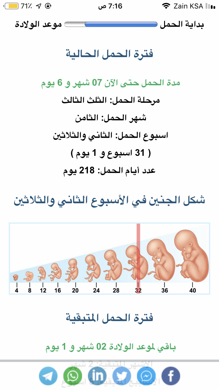 هذي يابنات حسب لي على اخر دوره اني داخله الاسبوع ال 32 لي يوم واول سونار باقي لي 3 ايام وادخل ال 32 ، اما الدكتوره الخميس قالت لي انتي بالاسبوع ال 30 ويوم السبت قالت لي ال 31 حشيش 😂 ، المهم شكلها كانت مخبطه بالحسبه المهم احس صدق قربنا خلاص خاصه باقي 4 ايام ويخلص ذوالحجه 😭