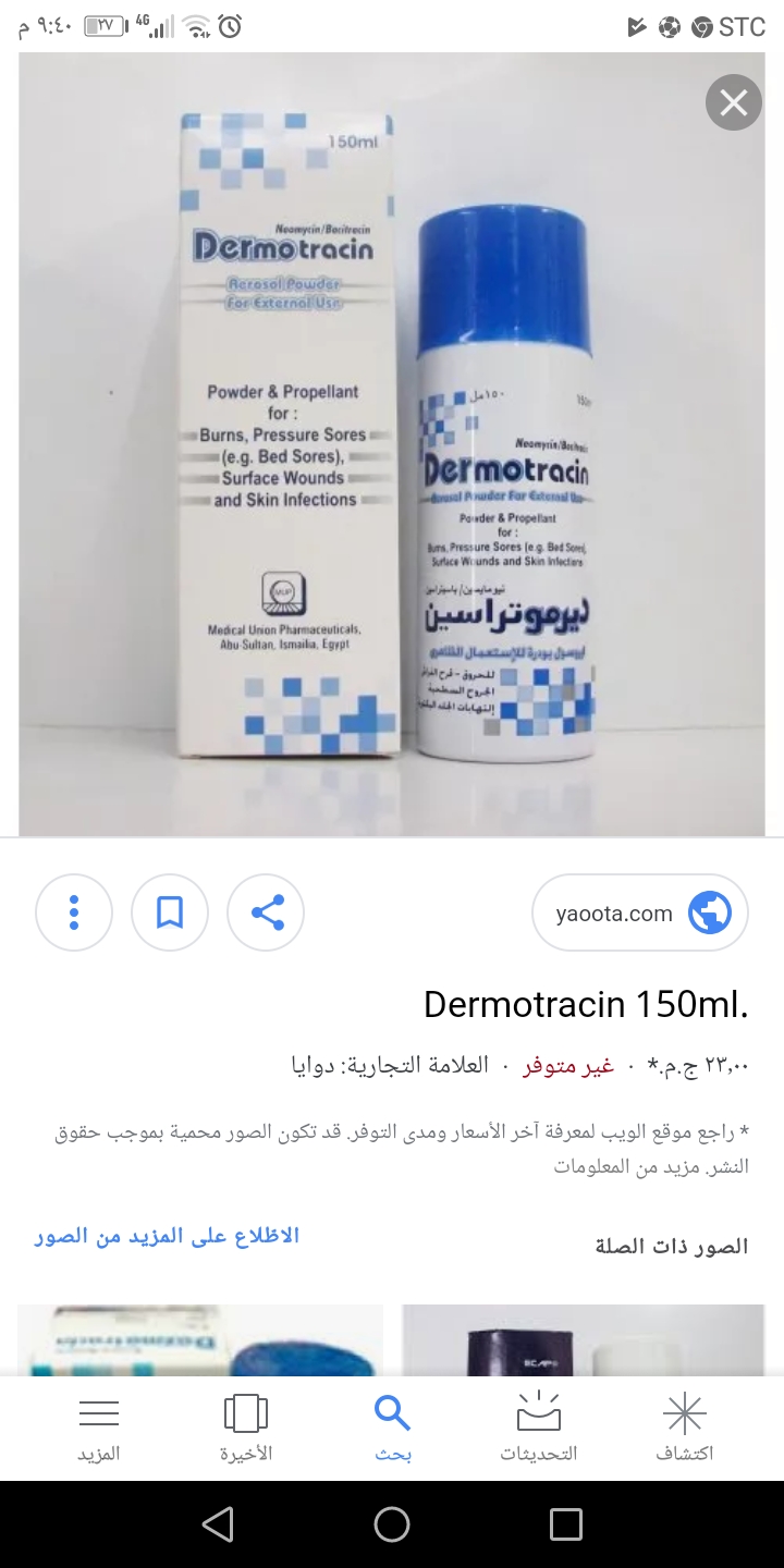 تصدقين ماقد جربتها بس العام ولدي انجرح بقزاز وعملو له خياطه وديته عند جراح ابغى اطمن عالجرح ..قلي طيب الحمدلله وعقمه وحط بودره يقولي هذه مضاد حيوي ولف الجرح ... يمكن هيا اللي تتكلمو عنهاتصدقين ماقد جربتها بس العام ولدي انجرح بقزاز وعملو له خياطه وديته عند جراح ابغى اطمن عالجرح...