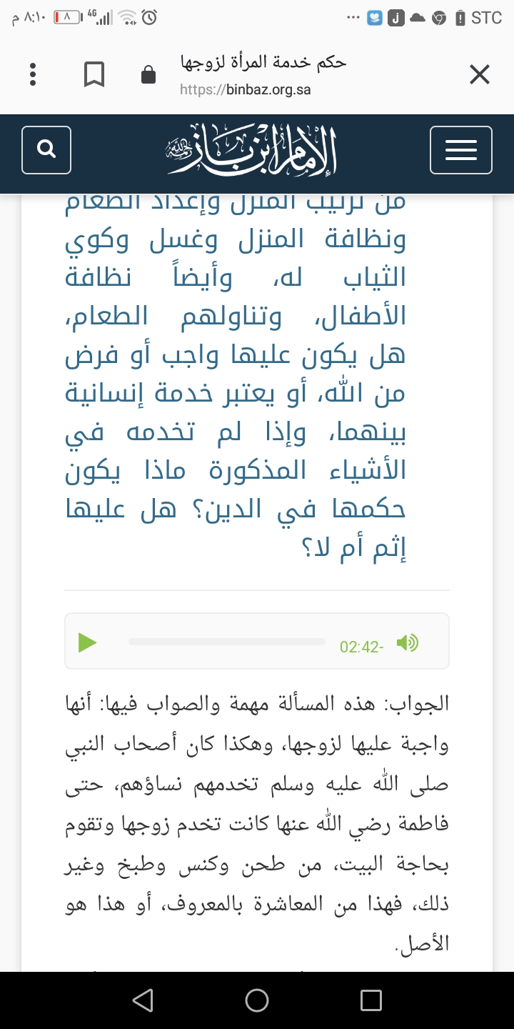 ولا عشان تخدمه وتقوم بمسؤولياتها كزوجه وام وراعية بيت