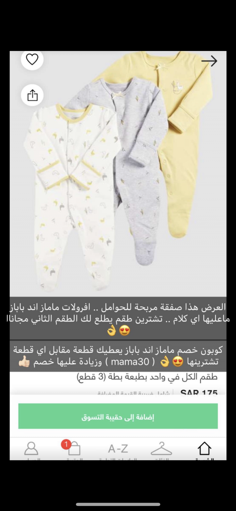 ذكرياااات شوفي تطبيق اسمه نسناس عنده عرض ماركه ماماز اند باباز تشترين طقم ٣حبات ب١٧٥ يطلع لك الطقم الثاني ثلاث حبات مجاني يجنن العرض😍👌🏻 لو اني عارفه الجنس كان ضفييييييت🏃🏻♀️