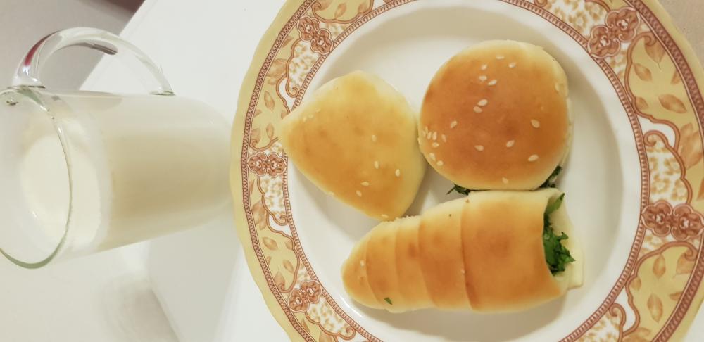 ثلاث حبات معجنات وحليب بالزنجبيل