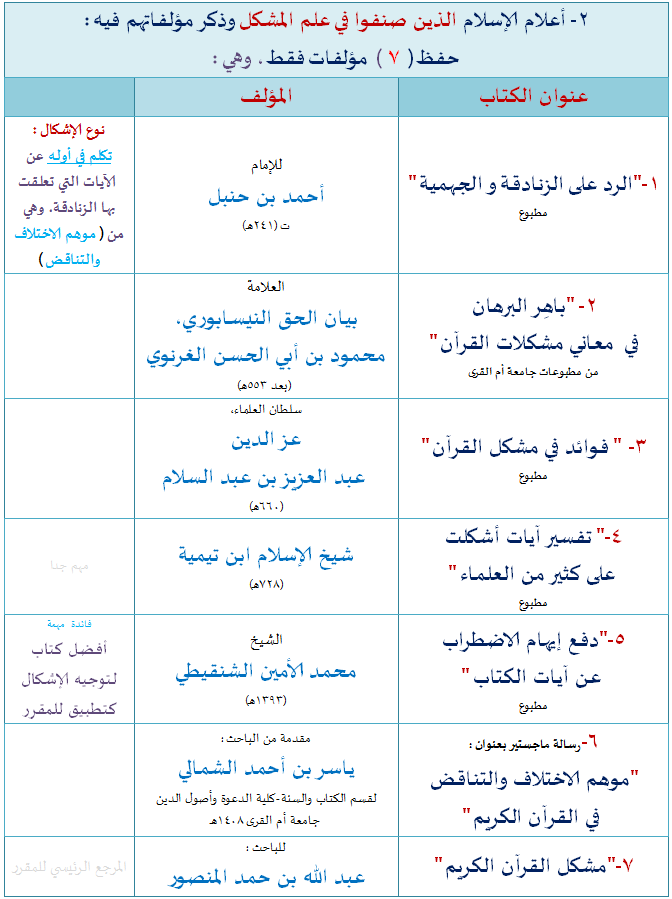 1-أهمية دراسة علم المشكل القرآني :ص23