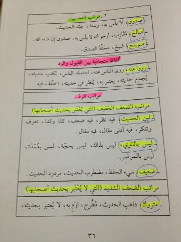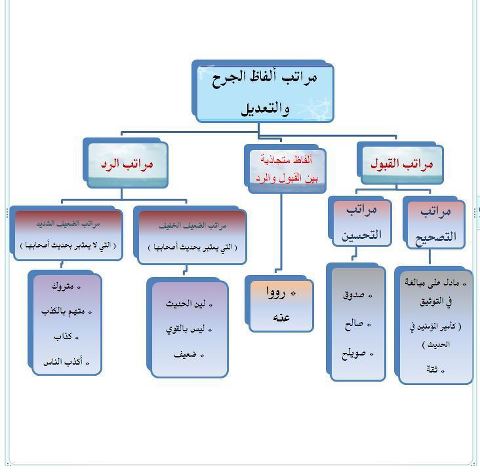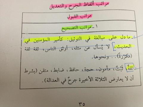 بالنسبة لصفحة 35 : تم تأشير مراتب ألفاظ الجرح والتعديل التي تدخل معنا في الإختبار كما في الرسم الشجري :