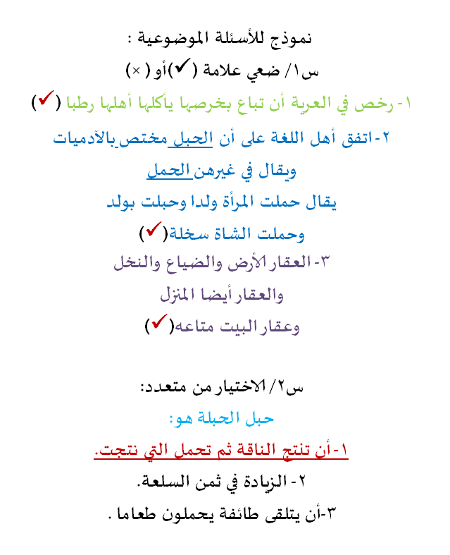 الأسئلة في هذه الجزئية >> مقالية و موضوعية