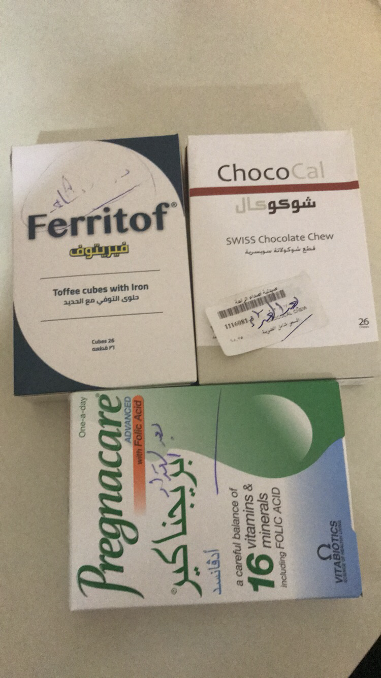والثالثه فتامينات كتبتها عشان نقص الدم مدري الحديد