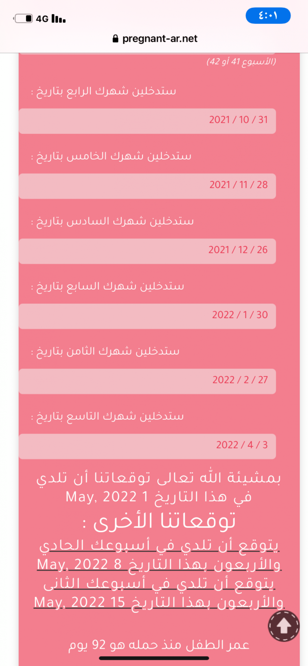 اخر موعد كان قبل اسبوعين قالت لي تعالي بعد ٤ اسابيع علشان...