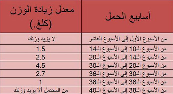 وهنا معدل زياده الوزن للحامل حسب الاسابيع