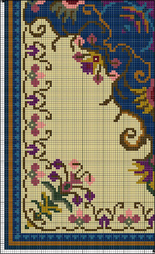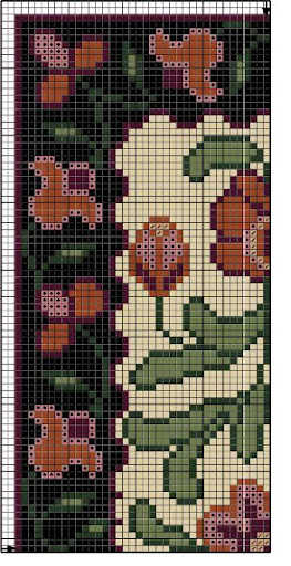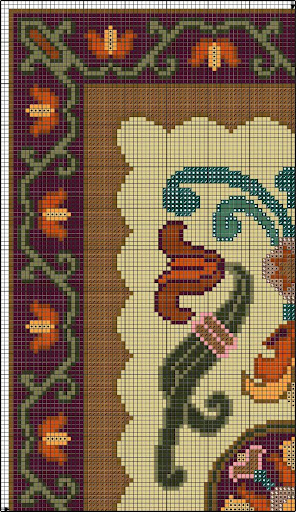 عروق النبات والثمر: النخل والسعف أو الجريد، وشكلها أقرب إلى التجريد طبعاً. ويطرزون أيضاً كوز الذرة والسرو والعنب والزيتون والبرتقال وسنابل القمح.