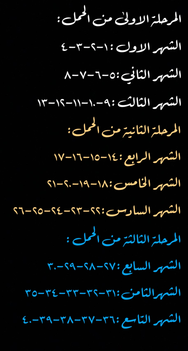 السلام عليكم انا من تجمع ثاني حبيت اشارككم جدول الحمل انا سويته يسهل عليكم تعرفون الاسابيع و ما يضيع 🥺♥️