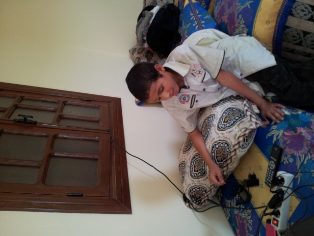 أول ما وصلنا لبيت العيلة معاذ تكلف بشحن الهواتف لانها مهمة للتواصل في العيد مع باقي العائلة لانها كبيرة جدا