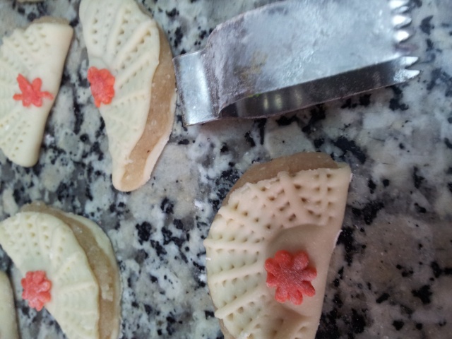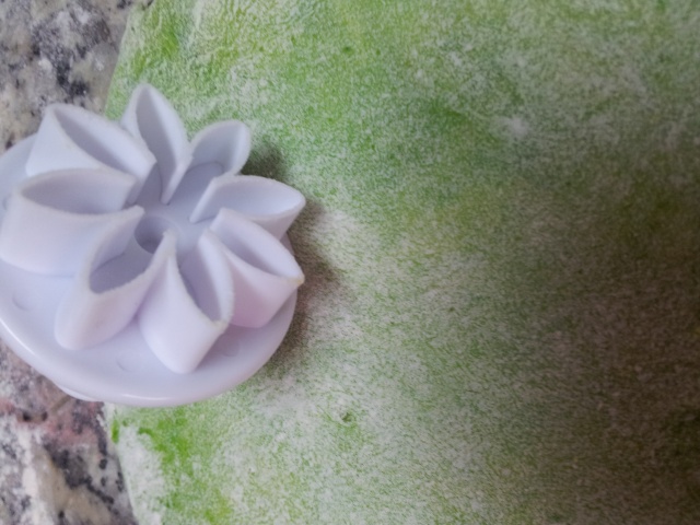 ناخذ شوية عجين نضيف اليه الملونات الغذائية لصنع الزهور