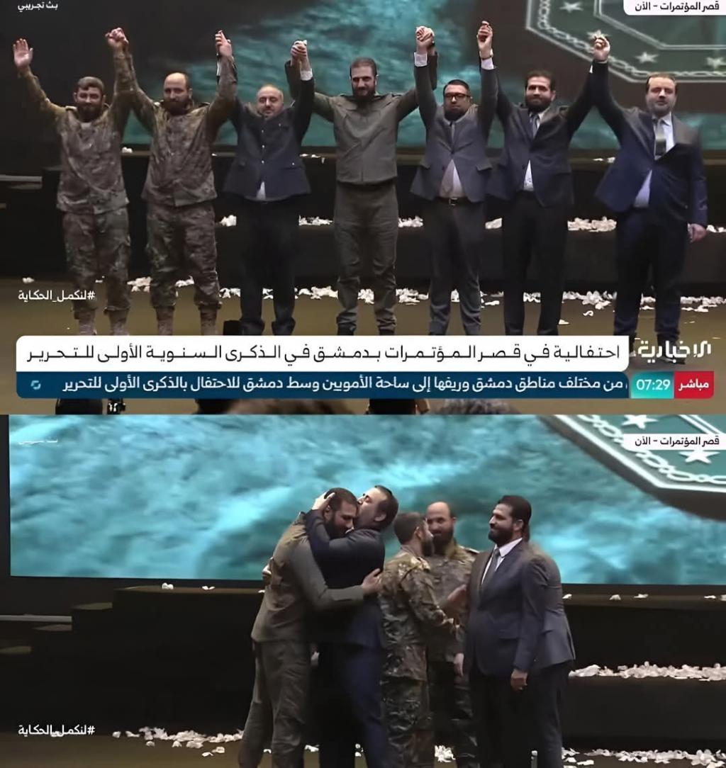 قادة هيئة تحرير الشام مجتمعين بالذكرى الاولى للمعركة التي اطلقوها ضد نظام الاسد والتي ادت الى اسقاطه وانهاء اقذر نظام ديكتاتوري بالتاريخ