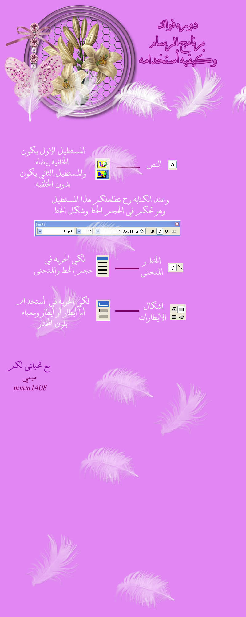 الله يعطيكي العافية عل هالدورة إن شاء الله استفيد منها لأني ميييييييييييييييييييييييح في الرسام قد ما حاولوا اولادي يعلمون مافي فايدة:09: