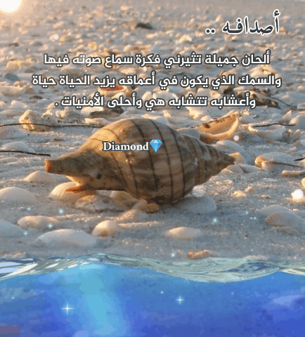 أصدافه، ألحان جميلة تثيرني فكرة سماع صوته فيها، والسمك الذي يكون في أعماقه يزيد الحياة حياة وأعشابه تتشابه هي وأحلى الأمنيات.