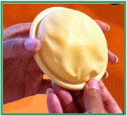 - يتم وضع كريم أو جيل ( 1-2 ملعقة صغيرة ) من مادة قاتلة للحيوانات المنوية Spermicide في الحاجز المهبلي في الداخل و الخارج و حافته ( شكل رقم 1 ).
