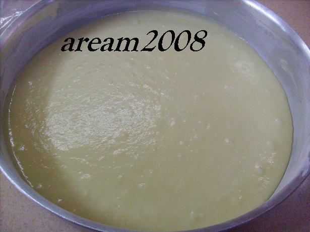 نخلط المقادير ونأخذ مقدار نص كاس من الخليط ثم نصب الخليط في صينيه