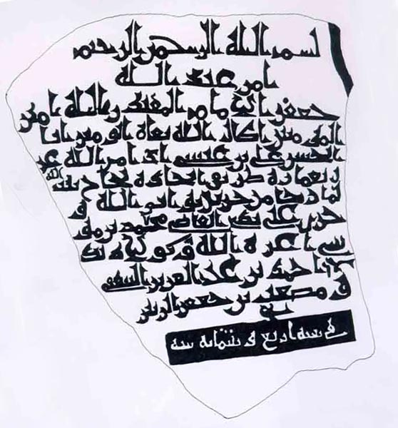 من الخط العربي الجنوبي المسند. ولكنه أكثر ليونة ، حروفه غير مزواة ،