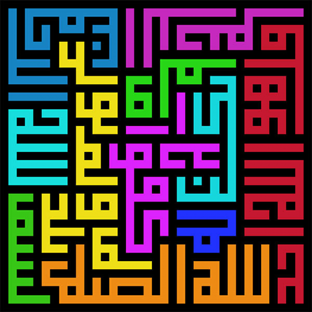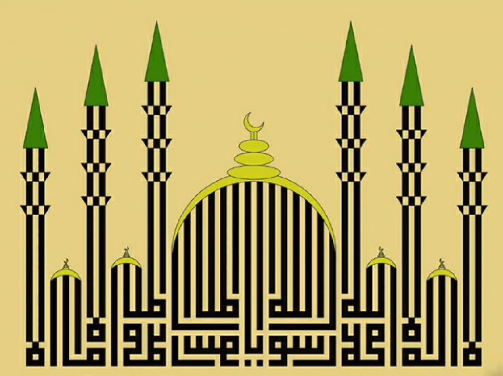 نموذج إخر للخط الكوفي الكتابة على شكل مسجد