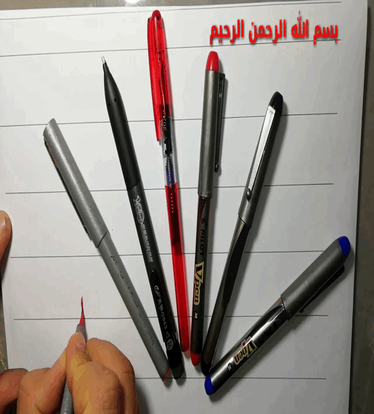 وهناك اقلام حبر جاهزة للخط والكتابة ولها درجات حسب حجم الخط المراد