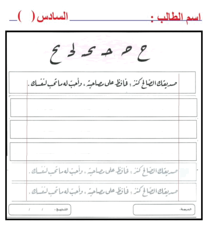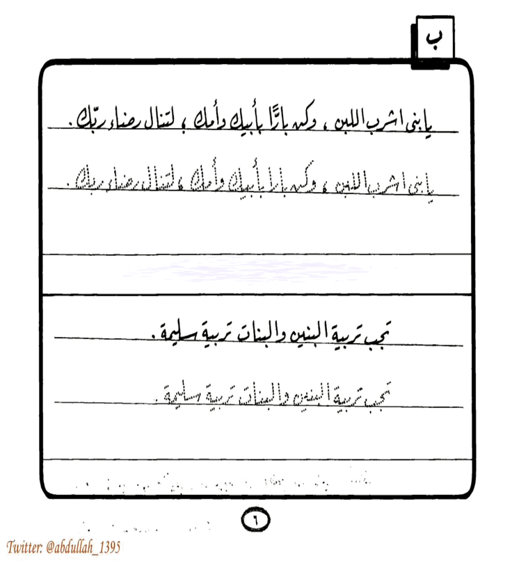 وتعلمي أولاً في كراسة الخط حتى تتقن الكتابة .