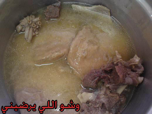 نشيل الزفره وننظف اللحم زين مازين ونظيف الملح والبصله ونقفل عليه الغطاء ونتركه الى ان ينضج.