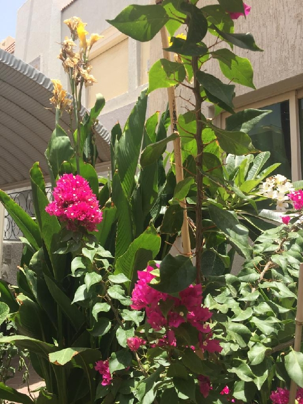 ومن الخلف بدت نبتة كانةوهي متطاولة في الطول ولها زهرة جميلة