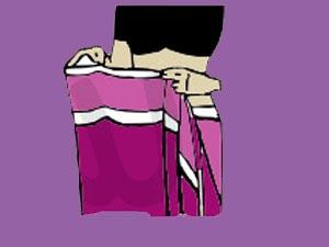 وبعدين تحطي القماش بالعرض على خصرك وتدخلي طرفه اليسار في التنوره يعني تثبتيه
