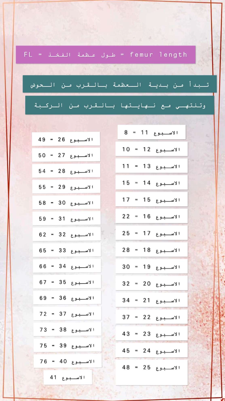 السلام عليكم بنات حبيت استفسر عن طول عظمه الفخذ للجنينFl 52
