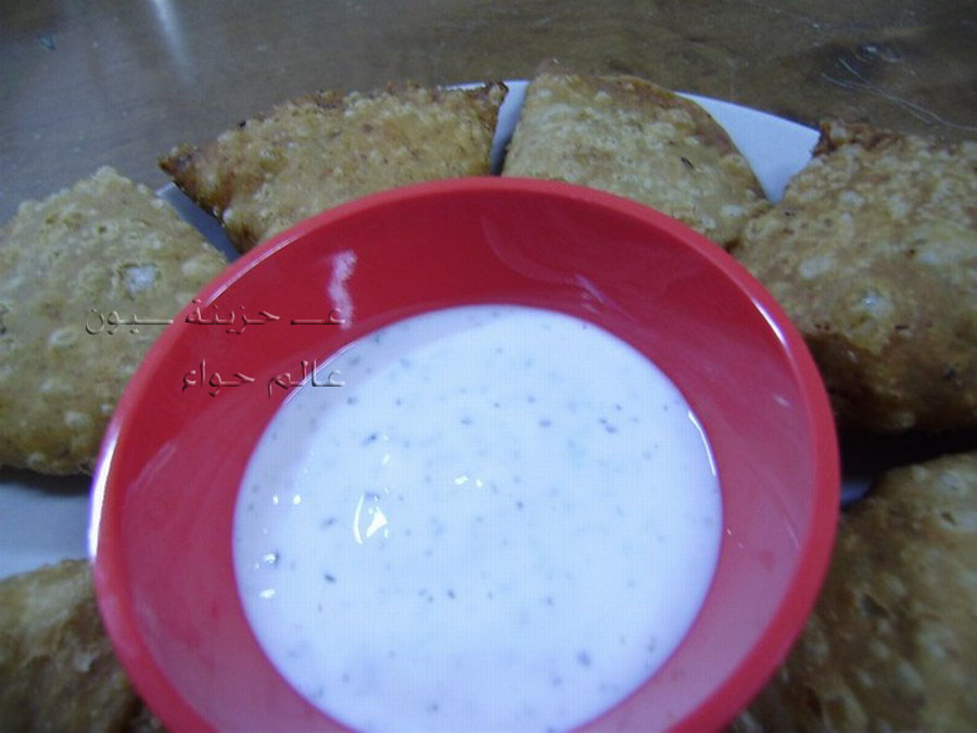 زبادي مع شوي نعناع ناشف --- نضربه بالخلاط الكاس أو فرامة البصل ويقدم