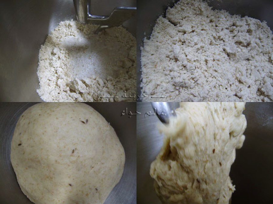 ننخل الدقيق مع الملح ( وإذا كان فيه نخالة نرجعاه للدقيق بعد النخل )